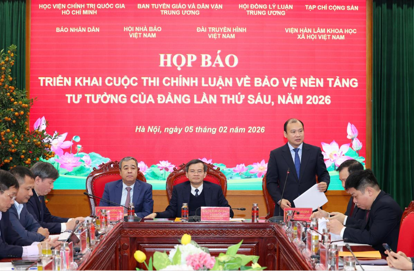 Sáng ngày 05/02/2026, tại Hà Nội, thực hiện chỉ đạo của Ban Chỉ đạo 35 Trung ương, Học viện Chính trị quốc gia Hồ Chí Minh chủ trì, phối hợp với Ban Tuyên giáo và Dân vận Trung ương, Hội đồng Lý luận Trung ương, Tạp chí Cộng sản, Báo Nhân dân, Đài Truyền hình Việt Nam, Hội Nhà báo Việt Nam và Viện Hàn lâm Khoa học xã hội Việt Nam tổ chức họp báo triển khai Cuộc thi chính luận về bảo vệ nền tảng tư tưởng của Đảng lần thứ sáu, năm 2026 (Cuộc thi). Đồng chí Đoàn Minh Huấn, Uỷ viên Bộ Chính trị, Giám đốc Học viện Chính trị quốc gia Hồ Chí Minh, Phó Trưởng Ban Chỉ đạo 35 Trung ương, Trưởng Ban Chỉ đạo Cuộc thi dự và chủ trì họp báo.